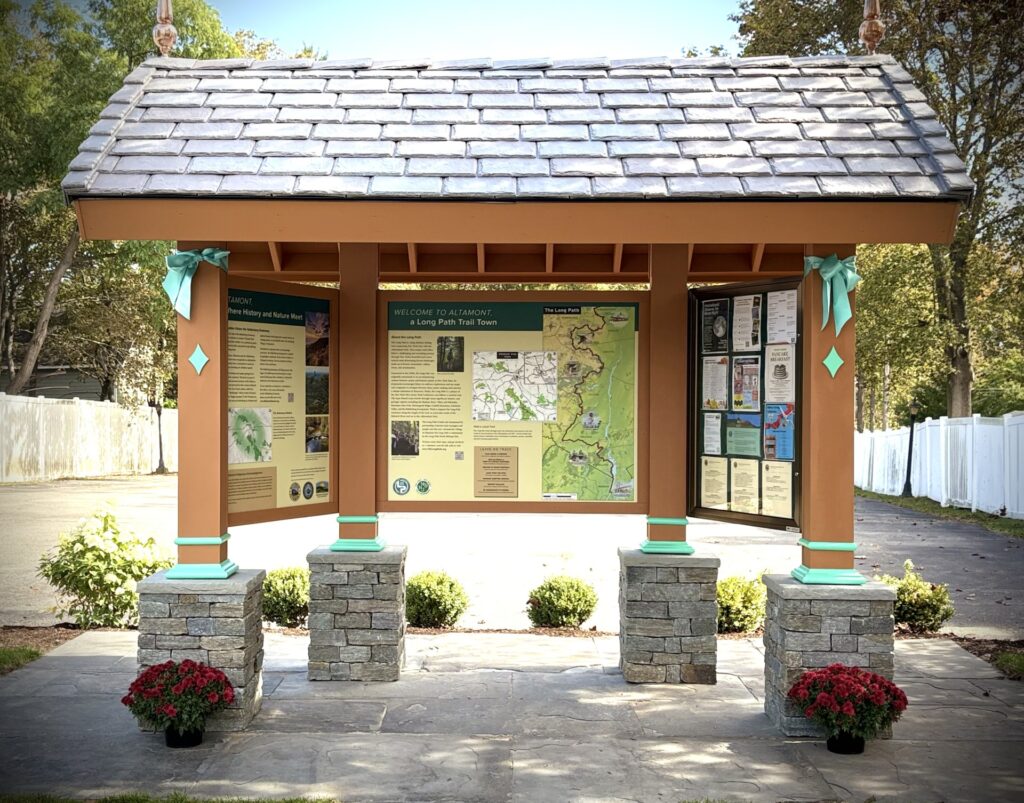 Completed in the summer of 2025, the Altamont Community Kiosk now stands at the heart of the village. As the new northern terminus of the 358-mile Long Path from the George Washington Bridge to Altamont, the kiosk represents a collaborative effort with partners including New York State Thacher Park, the Mohawk Hudson Land Conservancy, and the New York New Jersey Trail Conference. Designed in a Victorian style to complement local architecture, it highlights recreation opportunities, regional attractions, and local businesses.